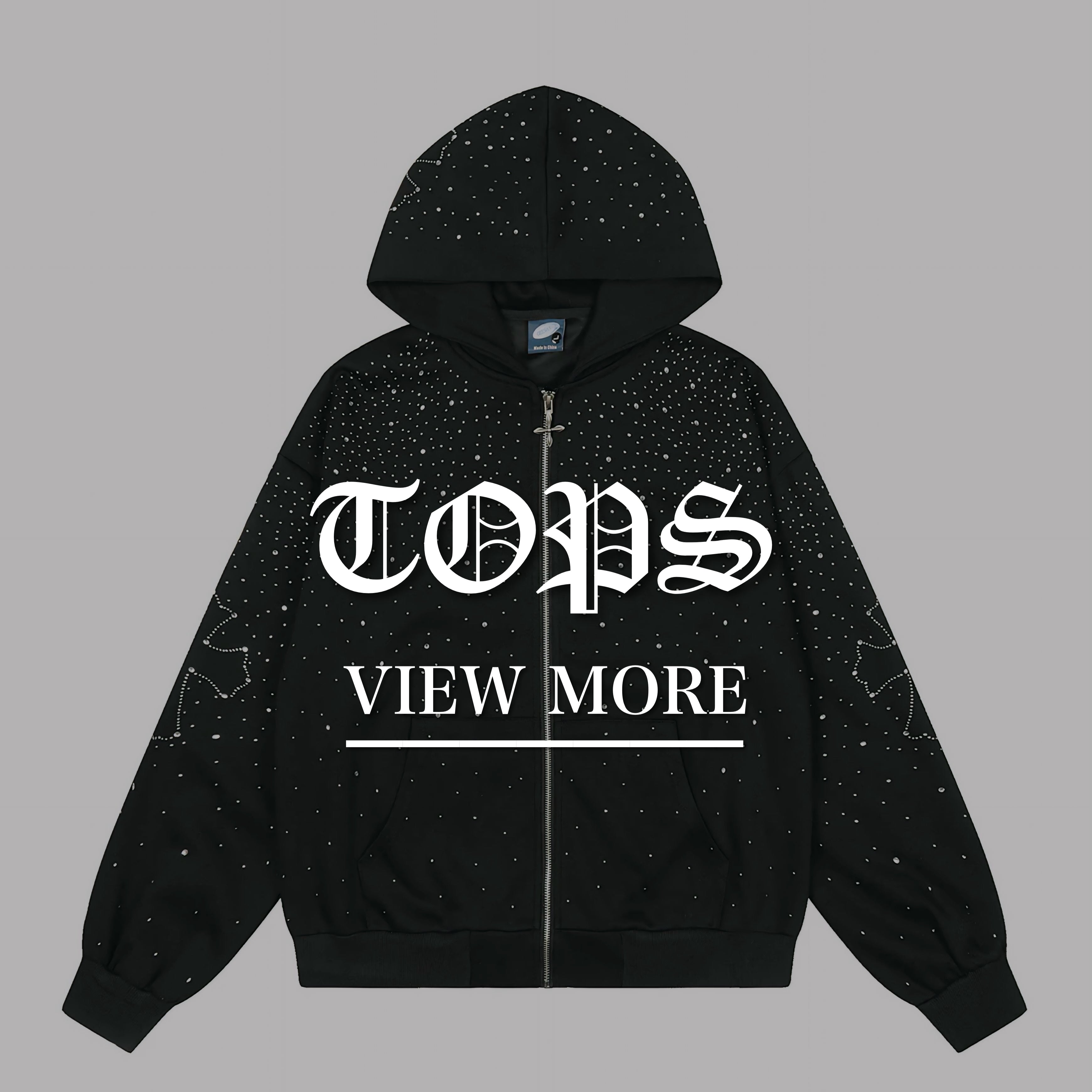 Rhinestone Cross Zip-Up Hoodie znk000241